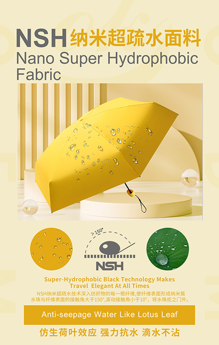 NSH納米(mǐ)超疏水技術是羞羞的网站在线观看傘業經過多年研(yán)發,在原有的納米疏水技術的基礎上研發、改進的納米技術。
