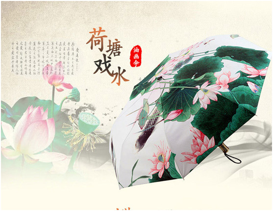 公元1072年(nián),周敦頤來到江西,創辦了濂溪書院,從此開始設堂講(jiǎng)學,收徒育人。造就(jiù)一篇《愛蓮說》,其佳句“出淤泥而不染,濯清漣而不妖,中通外直,不蔓不枝,香遠益清,亭亭淨植,可(kě)遠觀而不可褻玩焉”成為千古絕唱,至今仍膾炙人口。借助(zhù)這種(zhǒng)意境,若將(jiāng)此創意連(lián)接在雨傘(sǎn)上,頗有一番韻味與詩意,在(zài)深圳這樣一個快節奏的地方,人們已經(jīng)遠(yuǎn)離了生活原本的樣子,在快速奔忙著,如果有這樣的一把三折傘,陪著(zhe)你(nǐ),多好。