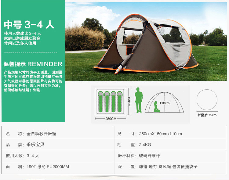 家(jiā)庭式全自(zì)動速(sù)開帳篷 的圖片和(hé)詳細(xì)說明