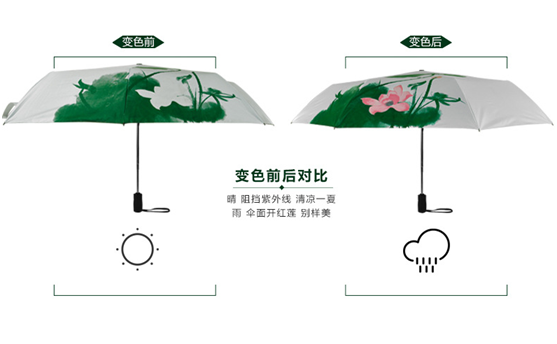 看到這兩張圖片,你就(jiù)會(huì)想怎(zěn)麽顏色不一樣啊?我們的雨傘不都是一樣的圖案嗎?你有這(zhè)樣的想法是對,因為你對雨傘還不是很了解。這樣的雨傘是現在公司推出的(de)遇水變色傘,在晴天是沒有顏色的,在下(xià)雨天遇到(dào)水就會慢慢變色,當你撐著它走在路上時,就會成為一道美麗的(de)風景線(xiàn),大大增加了(le)回頭率!