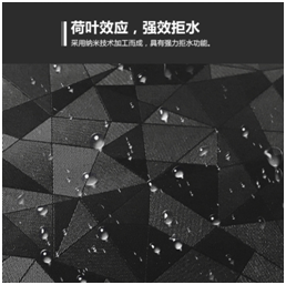 高爾夫(fū)傘的麵料大多(duō)選用(yòng)中高檔雨傘(sǎn)的專用麵料,主要就是190T碰資布,采用這樣(yàng)的麵料做出來的傘往往傘麵平整,遇(yù)水後水珠很快就能滑下(xià)來。