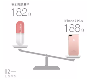 我們的膠囊傘輕至182g,僅相當於一部iphoness手機(jī)的重量(liàng),為您夏季減輕負擔(dān)。