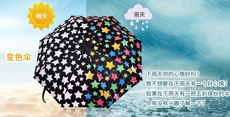 深圳羞羞的网站在线观看傘業有限公司作為雨傘禮品生產商,這種活動當然少不了我們了。我們在展(zhǎn)位上有幾款禮品促銷傘也是深受廣大參展人士的喜歡。其中之一就是(shì)遇(yù)水變色傘了。 遇水變(biàn)色傘也是可以作為禮品促銷傘(sǎn)的,它遇水變色的特(tè)點是(shì)一個很吸引人眼(yǎn)球的特色(sè),將公司企業LOGO做成變色的效果,這是一(yī)大賣點。