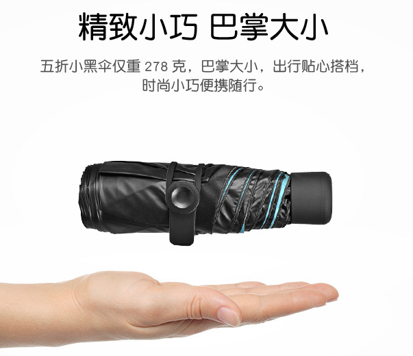 防紫外線指數可達99%!當然既然咱們要隨身攜帶的傘,隻有防曬是肯定不夠的(de),它還很輕巧便攜
