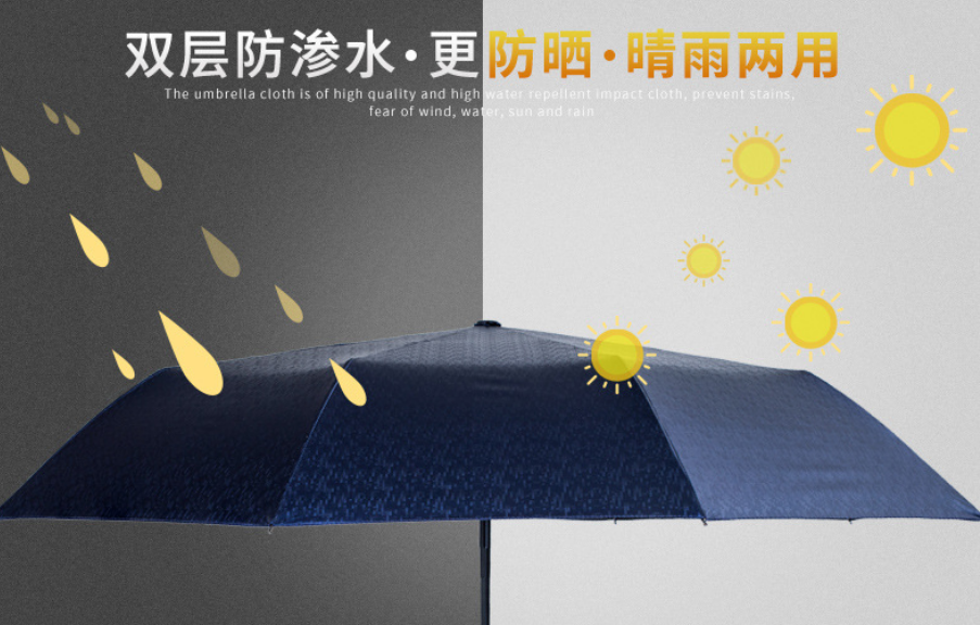 大(dà)部分(fèn)的雨傘的(de)傘布材料隻是用的普(pǔ)通的雨(yǔ)傘布料去(qù)做的,但是現在很多中高檔的雨傘(sǎn)品牌基本都要求除(chú)了防雨之外還需要防曬(shài)的功能(néng)!這就是晴雨兩用雨傘(sǎn)!